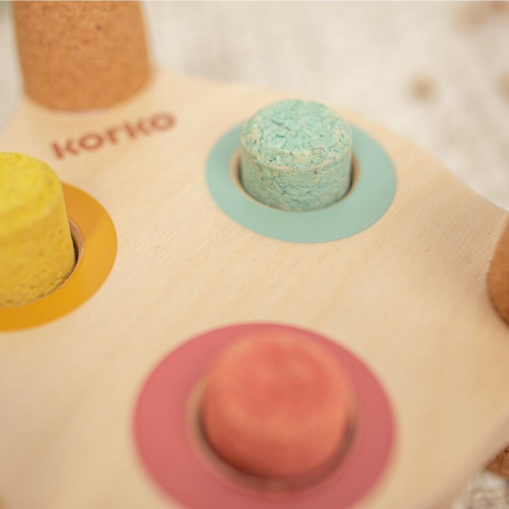 Kork ist ein fantastisches Material für das Kinderspiel. Er wird von Korkeichen gewonnen, die sich natürlich regenerieren, was ihn zu einer verantwortungsbewussten Materialwahl mit Respekt vor der Natur macht.